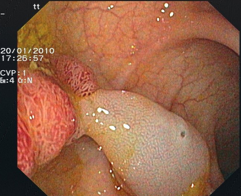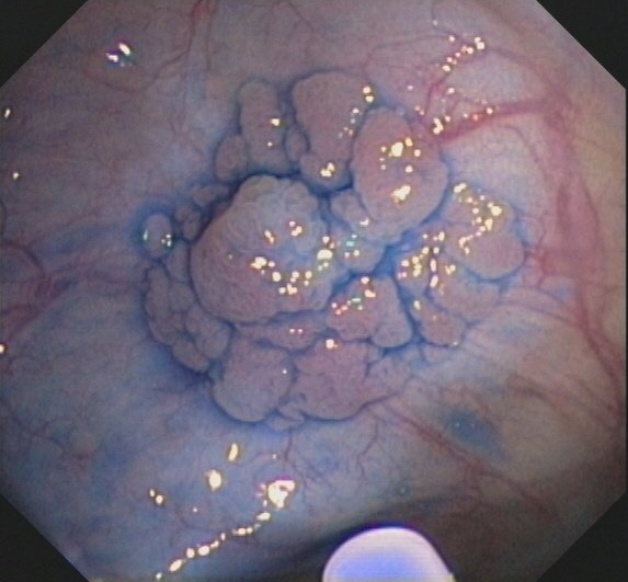 Viele Polypen sind flach und damit mit der Schlinge nicht so gut zu fassen. Bei solchen Polypen ist eine Chromoendoskopie mit Indigokarmin hilfreich, um sie besser abgrenzen zu können. Dann wird mit einer Injektionsnadel, die auch durch das Endoskop eingeführt wird etwas verdünnte Adrenalinlösung in die Schleimhaut unter dem Polypen injiziert. Der Polyp hebt sich halbkugelig ab und kann mit der Schlinge gefasst und abgeschnitten werden. Durch das Adrenalin verengen sich die Gefäße des Polypen, so dass eine Blutung verhindert wird.
